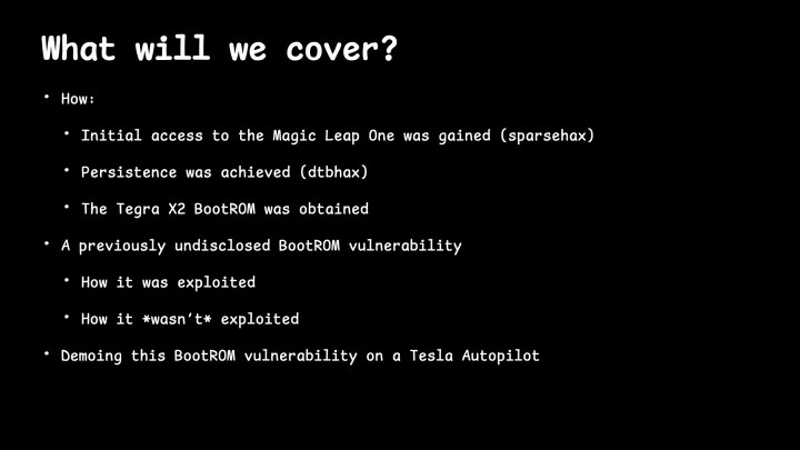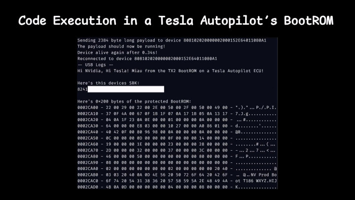这一发现的影响范围远超MagicLeap头显本身。Katze在演示中证实,由于特斯拉的Autopilot2和2.5自动驾驶硬件同样采用了TegraX2芯片,该漏洞对特斯拉车辆同样有效。这意味着,只要物理接触到车辆的硬件接口,攻击者便能利用相同的手段绕过安全启动链,完全接管自动驾驶计算平台。